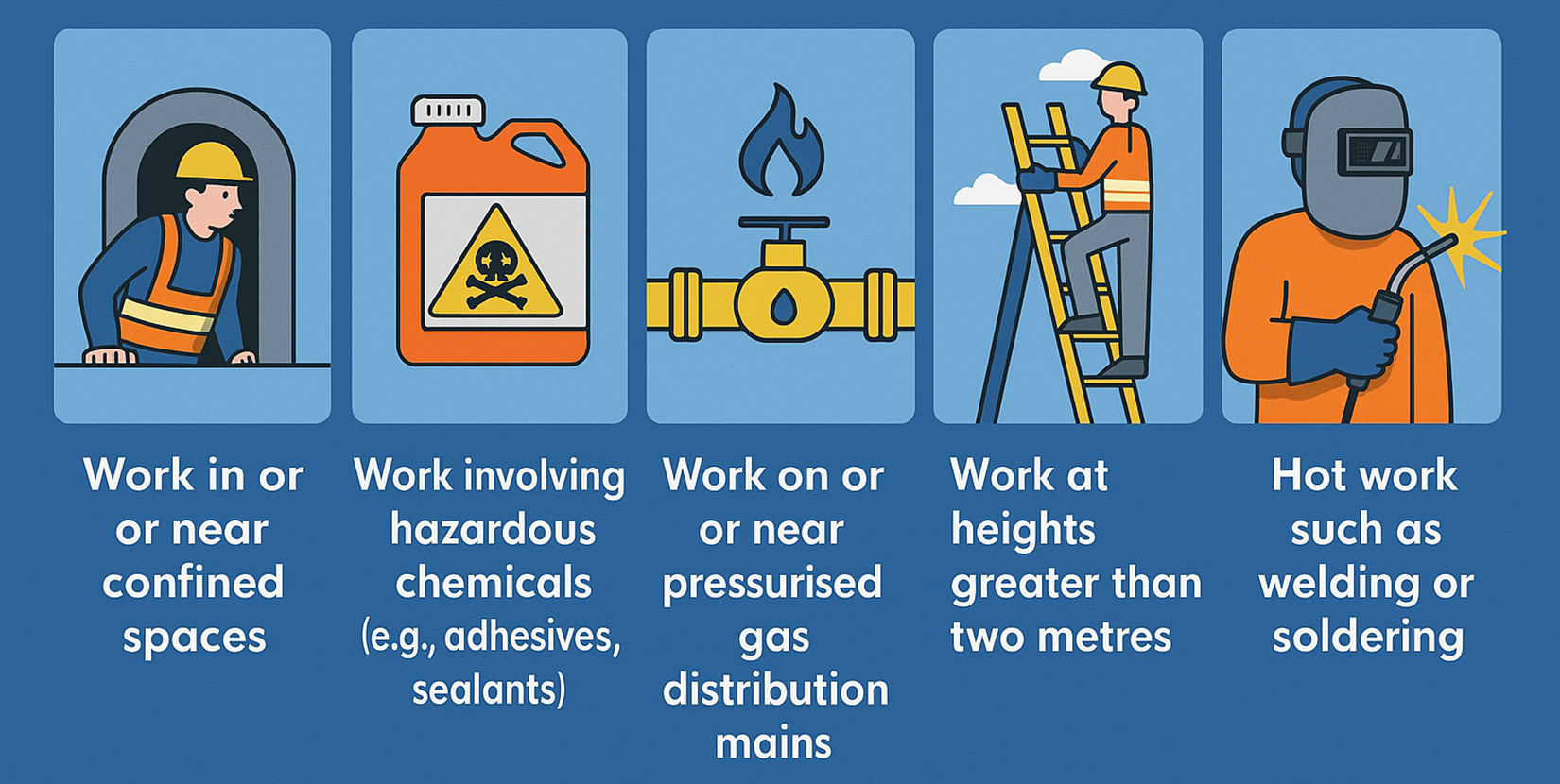 A plumbing contractor in Queensland was engaged for a gas fitting project in a commercial building. Initially, their SWMS did not adequately address confined space risks during pipe installation. Following a review, they developed a more detailed plumbing SWMS that included: