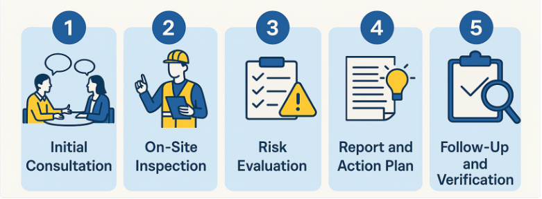 The process begins with a comprehensive on-site inspection. Consultants examine each area of the home from bedrooms to bathrooms, electrical systems to outdoor spaces, identifying unsafe conditions and areas of non-compliance with relevant safety standards